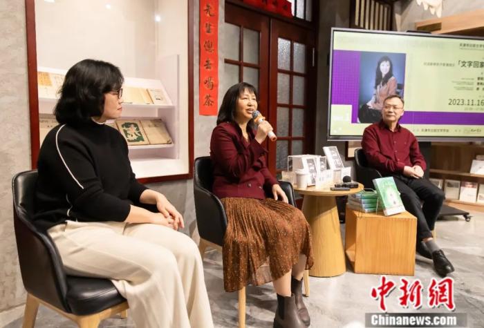 曾曉文(中)參加由天津市比較文學(xué)學(xué)會主辦的“文字回家”主題討論會。王在御 攝