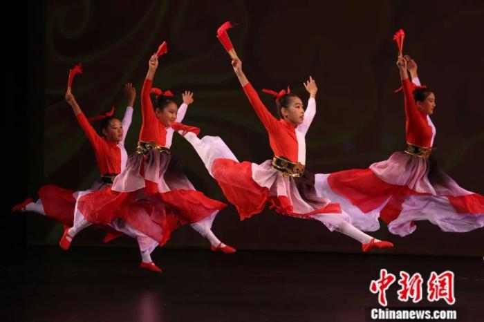 2023年9月,加拿大大多倫多地區(qū)萬錦市,加拿大舞蹈藝術(shù)聯(lián)盟舉辦首屆舞蹈大賽。圖為一支中國舞兒童組參賽隊進行表演。余瑞冬 攝