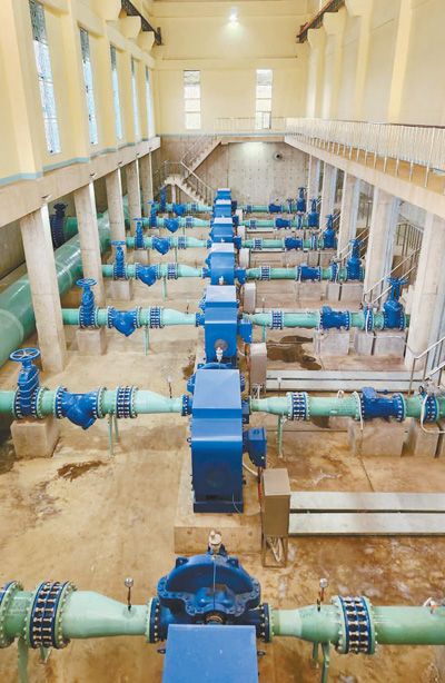 坦桑尼亞阿魯沙新供水系統項目由中國電建市政建設集團有限公司承建。項目設計日供水量為12.5萬立方米/天,可滿足阿魯沙40萬人的用水需求。項目建成后將極大地改善阿魯沙市區的供水短缺問題,對推動當地經濟發展、增進民生福祉具有重要作用。圖為阿魯沙新供水系統項目5號提升泵站內景。