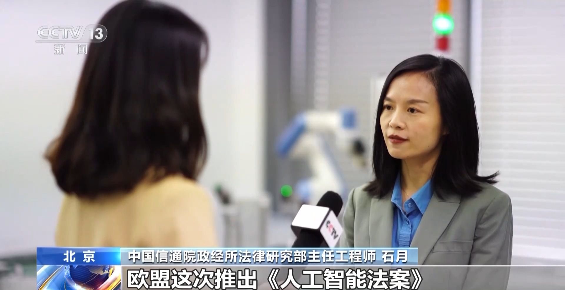 中國信通院政經所法律研究部主任工程師 石月:歐盟推出《人工智能法案》,很有可能成為全球首部高層級的關于人工智能的法律框架。希望在人工智能領域繼續維護它本土的數字主權、數字安全,提升在人工智能規則制定的國際話語權。