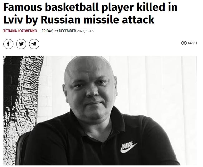 中新網12月30日電 據《烏克蘭真理報》報道,當地時間29日,烏克蘭利沃夫市議會體育事務負責人安東·尼庫林發文稱,烏克蘭知名籃球運動員、教練維克多·科布齊斯蒂在俄軍當天發動的襲擊中死亡。