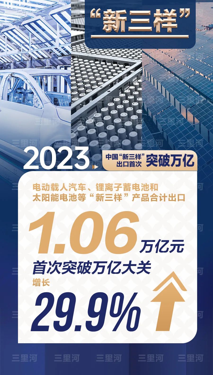 活力來自新動能——制造業技改投資增長3.8%,高技術產業投資增長10.3%,快于全部固定資產投資的增速。2023年電動載人汽車、鋰電池和太陽能電池等“新三樣”產品合計出口1.06萬億元,首次突破萬億大關。中國經濟在加快培育新質生產力中不斷發展壯大。