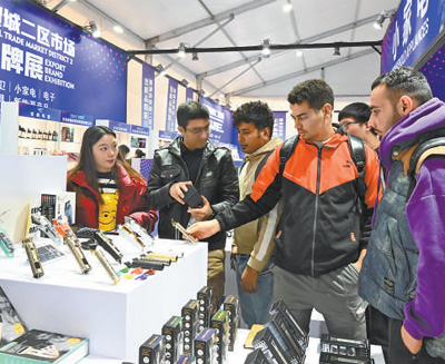 在義烏國際商貿城,外國客商在二區垂直展采購小家電。