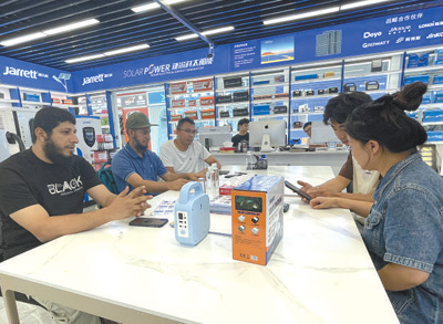 最近,埃馬紐埃爾又開始關注新能源產品?!翱溌∫恍┑胤酱嬖陔娏Χ倘?、供電不穩的問題,很多當地人希望我能在中國找到合適的產品?!睘榇?,他把目標瞄準了義烏國際商貿城的新能源產品市場,尋找到一些適合喀麥隆的光伏設備。“中國的新能源產品性能可靠、性價比高,產品品類覆蓋領域廣泛?!卑qR紐埃爾表示,大到醫療機構,小到禽畜養殖場,中國光伏設備供應的電力有助于滿足當地民眾生產生活的用電需求。