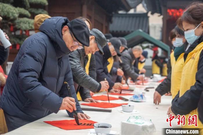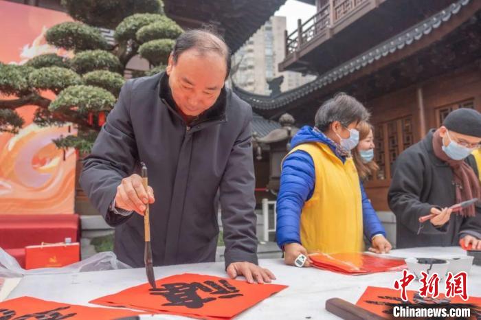 中新網上海1月21日電(記者 范宇斌)21日,“龍興歲時旺 送福百萬家”——2024年玉佛禪寺新春送福活動在上海玉佛禪寺啟動。上海覺群書畫院理事長、玉佛禪寺方丈覺醒法師表示,迎新貼“福”字是傳統的年俗文化,也是中華兒女對于美好生活、光明未來的共同期待。