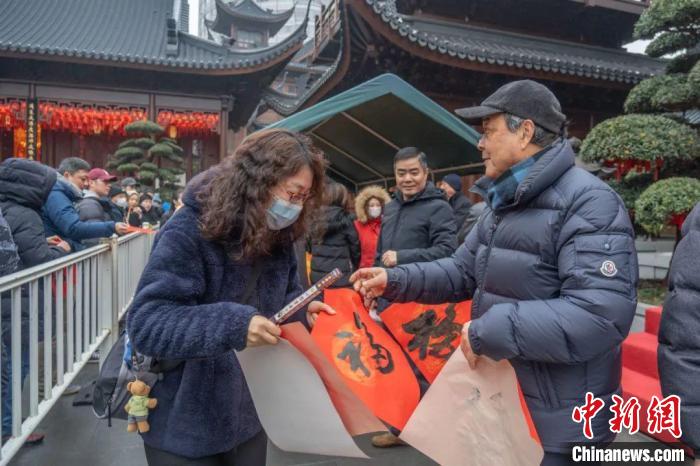 據了解,玉佛禪寺在迎新春系列慈善活動中,將書寫的“福”字廣贈市民游客,這樣的活動已持續15年。2022年開始,玉佛禪寺新春送福活動納入上海統一戰線民生實事項目“送‘福’百萬家”。今年,玉佛禪寺新春送福活動持續七天,現場題寫的每一張“福”字都承載著送福、添福、祝福的吉祥內涵。