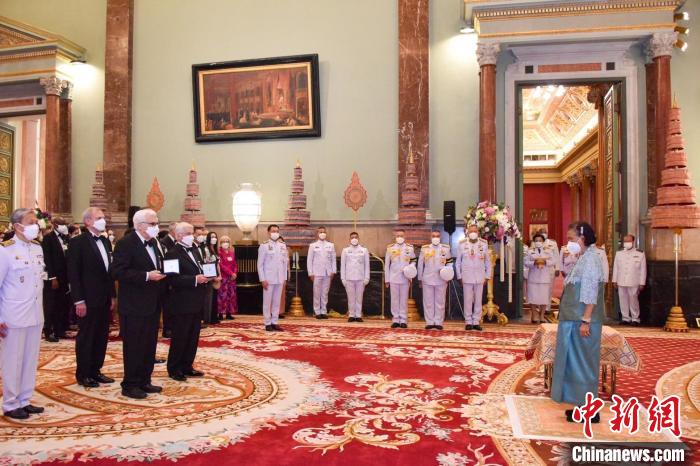 中新網(wǎng)曼谷1月26日電(李映民 陳映玲)當(dāng)?shù)貢r(shí)間24日,泰國詩琳通公主在曼谷大皇宮主持了2023年瑪希隆王子獎(jiǎng)?lì)C獎(jiǎng)典禮。來自美國加州大學(xué)圣地亞哥分校醫(yī)學(xué)院的拿破侖·費(fèi)拉拉和來自美國科羅拉多州立大學(xué)醫(yī)學(xué)院的巴里·魯馬克獲得2023年瑪希隆王子獎(jiǎng)。