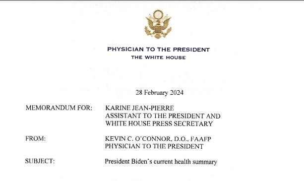 白宮總統醫生凱文·奧康納在一份關于總統健康狀況的六頁文件中表示,拜登仍“適合履行職責”。奧康納寫道,“總統正在很好地適應一種有助于控制睡眠呼吸暫停的新設備。”