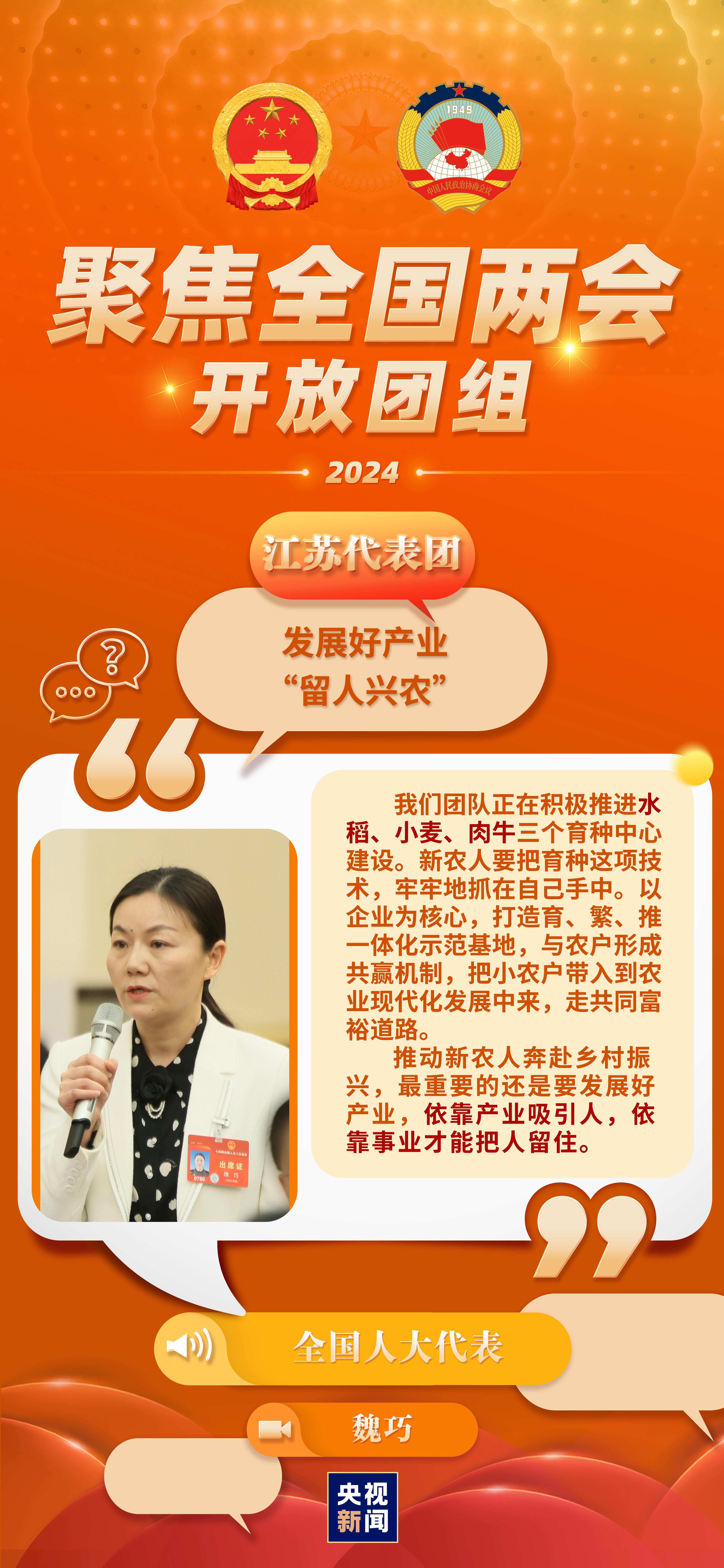 今天(3月7日)上午,出席第十四屆全國人大二次會議的江蘇代表團舉行開放團組活動。就媒體關心的發展新質生產力、推進新型工業化、農業現代化、優秀傳統文化傳承等相關問題,代表們在現場回答記者提問。