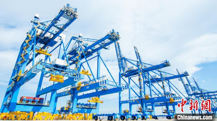 青島港自動化碼頭,振華重工建造的自動化岸橋。 振華重工供圖