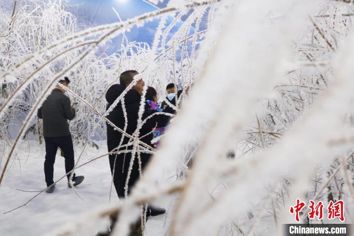 “五星霧凇”出現在室內,引游客駐留。 蒼雁 攝