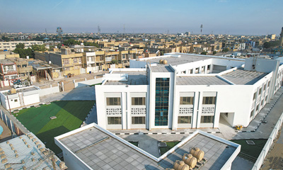 伊拉克政府決定到2030年新建8000所學校,其中首批規劃的1000所示范學校中,中國電建承建了679所。圖為已經完工的伊拉克瓦西特省第20號學校,學校為合院式全功能建筑。