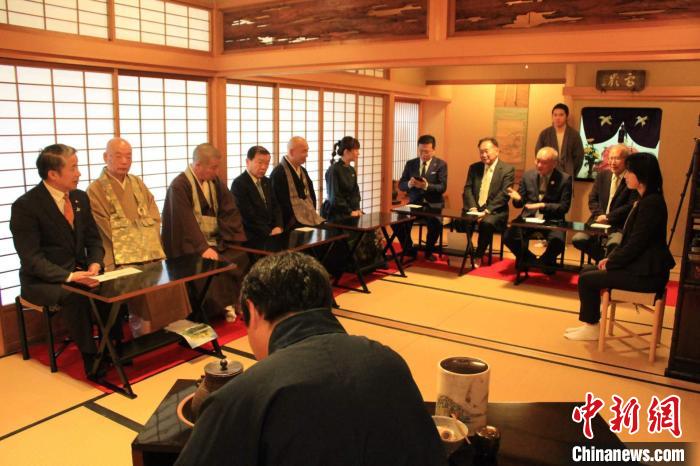 中國(guó)駐大阪總領(lǐng)事薛劍、領(lǐng)事崔小萍,日本黃檗宗大本山萬(wàn)福寺管長(zhǎng)近藤博道、宗務(wù)總長(zhǎng)荒木將旭、庶務(wù)部長(zhǎng)關(guān)塚哲心,京都府茶業(yè)會(huì)議所會(huì)首堀井長(zhǎng)太郎,奈良縣日中友好協(xié)會(huì)會(huì)長(zhǎng)天根俊治、宇治市日中友好協(xié)會(huì)事務(wù)局長(zhǎng)矢野友次郎以及黃檗文化促進(jìn)會(huì)會(huì)長(zhǎng)林文清,日中茶文化交流協(xié)會(huì)理事長(zhǎng)于昊男等中日各界人士出席。