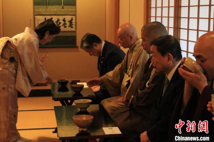 中新網(wǎng)奈良4月1日電 (鄭訓(xùn)焓 朱晨曦)日中茶文化交流協(xié)會(huì)和黃檗文化促進(jìn)會(huì)近日共同在奈良茶道石州流片桐貞明家元茶室舉辦中國(guó)茶和日本茶交流會(huì)。