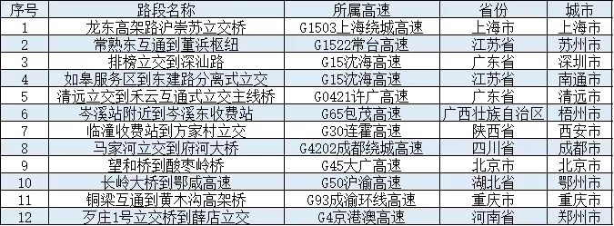 清明節期間,全國高速公路預計易發生擁堵緩行的路段,如表1所示。