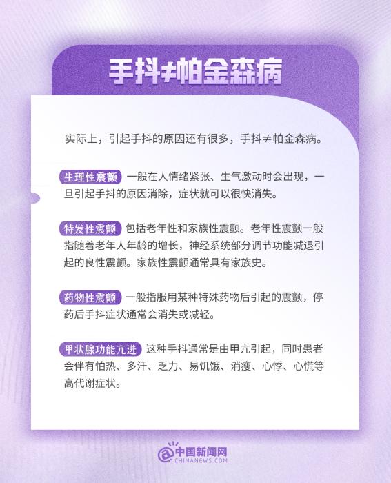 中新網4月11日電 帕金森病是威脅老年人健康的“沉默殺手”。帕金森病=老年癡呆?得了帕金森病壽命會縮短?只有老年人會得帕金森病?今天是世界帕金森病日,這些有關帕金森病的小知識,一起了解!