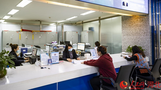 在曹妃甸區政務中心大廳,前來辦理審批手續的相關人員正在自助打印區打印文件。 季春天攝