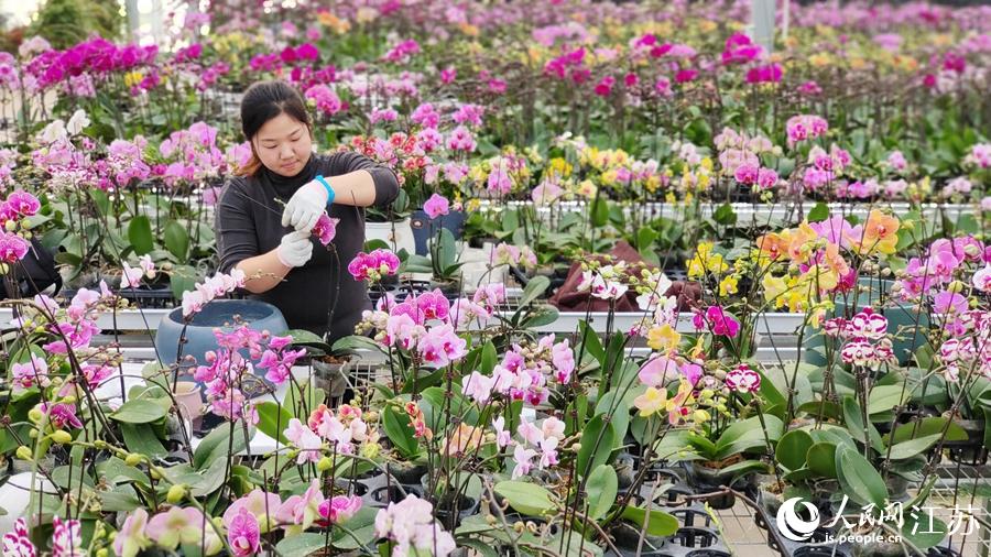 基地員工忙著對蝴蝶蘭進行組盆。丁華明攝人民網宿遷1月13日電 (黃啟源)臨近春節,江蘇沭陽縣耿圩鎮的蝴蝶蘭基地里百花爭妍,恰似彩蝶起舞。作為當地蘭花產業化示范園區,這里培植有60余個蘭花品種,目前年實現產值過億元。基地年累計用工600余人,其中相當一部分是當地低收入戶,可為每人每年增加工資性收入4萬余元。