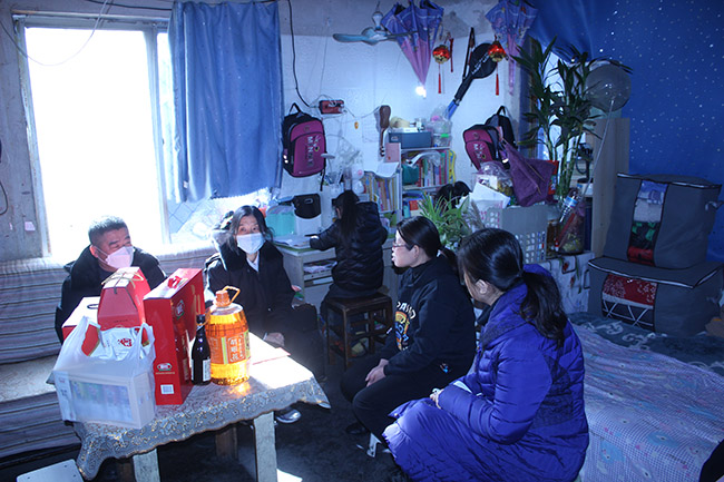 2022年1月24日,年關將至,氣溫驟降。濟南市中區人民法院少審庭的法官們在李江庭長的帶領下,踩著厚厚的積雪,提著滿滿的春節年貨和生活、學習用品,來到轄區內一間不足20平方米的簡易出租房內,看望了從大山深處來濟南生活的秦女士(化名)和她的三個女兒。 6年里的每個春節前夕,他們都會來看望這個因“案”結緣,心中時常牽掛的小姐妹家。