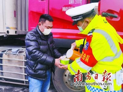 交警為旅途中的司機提供便民服務。 通訊員供圖