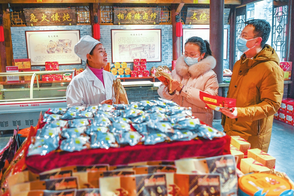 1月28日,游客在平遙古城一商店內(nèi)購(gòu)買年貨。虎年春節(jié)將至,平遙古城內(nèi)花燈高掛,特色產(chǎn)品商店貨物充足,洋溢著濃濃的年味。(梁生仁攝)
