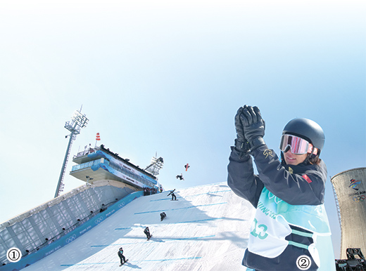 圖①:2月15日,單板滑雪男子大跳臺決賽,蘇翊鳴第二跳確定優勢。