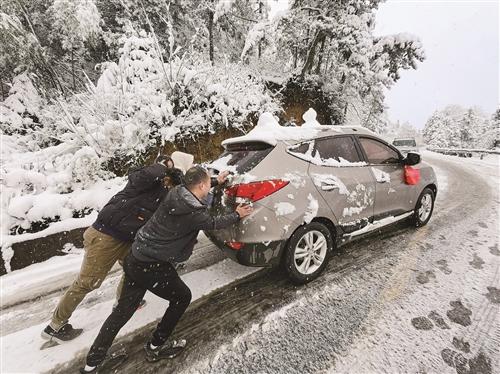 2月17日,臺(tái)州市多地迎來(lái)降雪。在臺(tái)州天臺(tái)石梁及華頂國(guó)家森林公園等景區(qū),雨雪冰凍天氣造成路面結(jié)冰,極易導(dǎo)致車(chē)輛打滑,引發(fā)交通事故。當(dāng)?shù)赜嘘P(guān)部門(mén)及志愿救援隊(duì)、附近村民等緊急出動(dòng),清理路面積雪,保障出行安全。(李昌正)