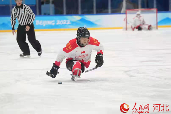 人民網石家莊3月6日電 3月5日20時5分,中國殘奧冰球隊迎來北京2022年冬殘奧會的首秀,殘奧冰球項目的比賽第一輪較量,中國隊首戰對陣斯洛伐克隊。比賽中,邢臺籍小伙申翼風一人攻入四球,幫助中國隊以7-0大勝對手,取得開門紅。