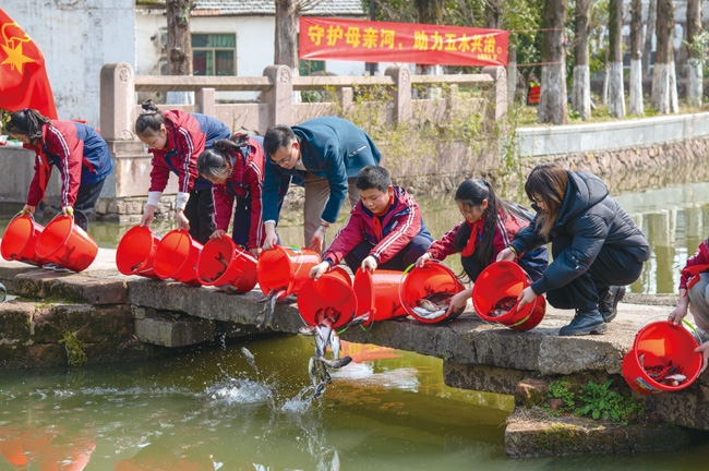 近日,金華蘭溪市永昌街道開展?jié)O業(yè)增殖放流活動,向溪流投放鳙魚苗。據(jù)了解,蘭溪市蘭江水域開展增殖放流活動已有20多年,品種有蝦蟹類、花鰱、白鰱、黃尾密鲴等多品種水生動物,不僅促進漁民增收,還有效改善蘭江水質(zhì),豐富蘭江水域漁業(yè)資源。(胡肖飛)