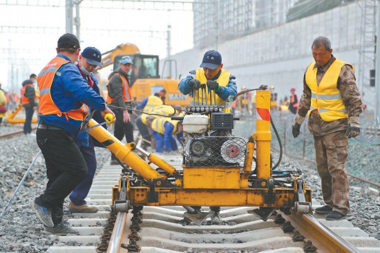 昨天上午,豐臺站改建工程計算機聯鎖封鎖施工、撥線施工開始,七百余名施工人員同時作業保障工程順利完成。本報記者 安旭東攝