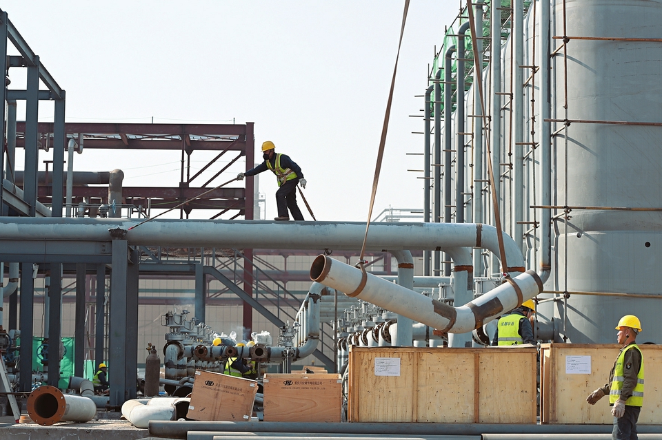 呂梁市圍繞氫能“制、儲、運、研、應用”加快構建全產業鏈集群發展格局,強力推進“一體兩翼、三港四鏈”氫能發展戰略,呂梁市氫能產業呈現動能加速集聚態勢。圖為3月16日,鵬灣氫港氫能產業園施工現場。(劉亮亮攝)