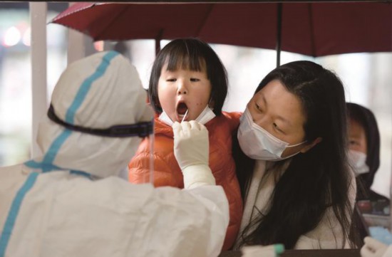 3月20日,在嘉興秀洲區(qū)新城街道核酸采樣點(diǎn),市民們冒雨前來參加核酸檢測。現(xiàn)場,有不少小朋友跟著家長參加檢測,面對和藹可親的醫(yī)護(hù)人員,小朋友們積極配合,一個個表現(xiàn)得特別勇敢。(馮玉坤)