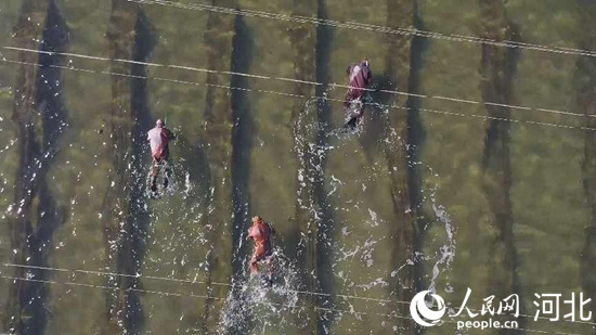 樂亭縣養殖戶正在打撈海參。 張偉攝