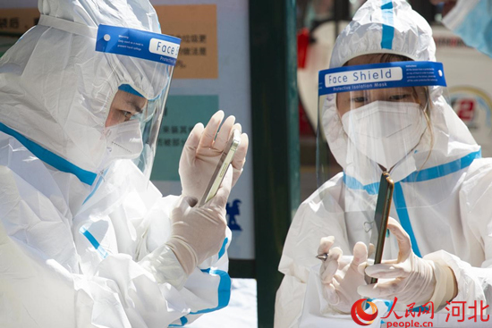 張振是滄州市人民醫院胃腸外科的護士。去年,他曾到藁城支援核酸采集工作。這一次,接到緊急任務通知后,有核酸采集經驗的他再次與同事奔赴核酸采集點。“前幾天我們在河西北街社區采集核酸,每人每天大概要采600余人的樣本。”電話里,張振的聲音略微沙啞。