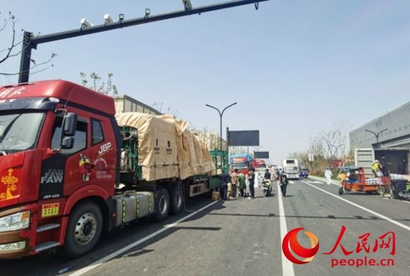 通農物流臨時交易區內,一輛輛卡車運來各類新鮮的蔬菜。人民網記者 王繼亮攝