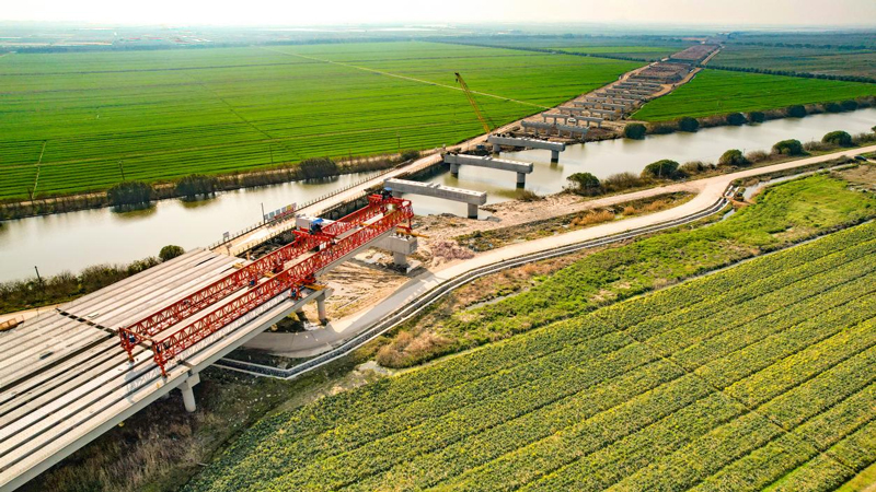 “預計再有15天就能把剩下的梁板全部架設完成,十塘江特大橋就可以實現全線架通,也將標志著杭甬復線寧波段一期項目陸域段首座特大橋的架設任務全部完成。”杭甬復線寧波一期項目施工方相關負責人介紹。