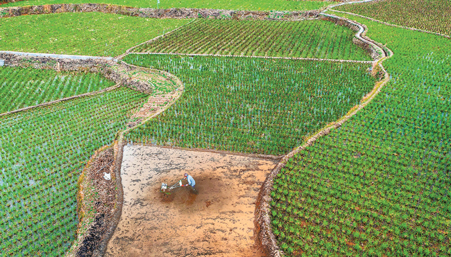 日前,麗水景寧縣大漈鄉(xiāng)大漈村,村民搶抓農時,在茭白田里翻耕、疏苗、插苗,開始忙碌著2022年的茭白種植。大漈鄉(xiāng)海拔1030米,近年來,當?shù)赝ㄟ^引進技術,在低產低效的山區(qū)冷水梯田里發(fā)展綠色生態(tài)茭白產業(yè),實現(xiàn)農業(yè)提質增效,農民增產增收,并成為浙江反季節(jié)山區(qū)冷水茭白的重點產區(qū)。(陳煒、李肅人)