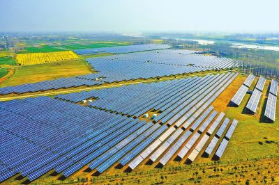 圖為正陽縣大林鎮軍耕家庭農場農光互補光伏電站項目。棚頂架上太陽能,棚內牛羊生長壯,菜花黃來桃花香,采摘果蔬又觀光……該項目正成為實現“農村美、農民富、農業強”的鄉村新景(3月28日攝)。高萬寶 攝