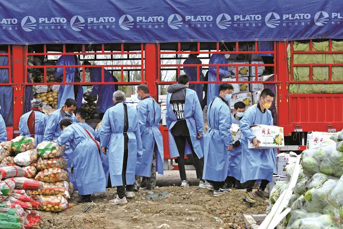 3月31日,掛著魯H、豫D、蘇H、皖B等地牌照的蔬菜運送車輛,陸續進入嘉興秀洲區臨時蔬菜批發市場。這些車上運來的蔬菜,經過現場交易后,正源源不斷地送抵市民餐桌上。(馮玉坤)