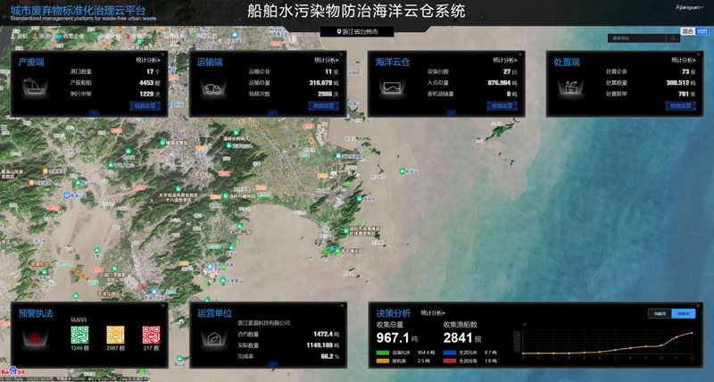 海洋云倉系統(tǒng)是在臺州中心漁港設(shè)立的船舶污染物集中預(yù)處理中心,可分類回收含油污染物、生活污水、廢鉛酸電池、生活垃圾等海域污染物。海洋云倉系統(tǒng)通過5G網(wǎng)絡(luò)接入云端,將收集的數(shù)據(jù)進行實時回傳,同時部署VR相機,利用5G大帶寬特性,監(jiān)控中心可實時掌握海洋云倉系統(tǒng)運轉(zhuǎn)情況。漁民只要在“浙里辦”手機端發(fā)起污染物上交申請,系統(tǒng)就會就近派單,通知專業(yè)船舶上門收集。海洋云倉在收集到一定量級后,會通知有專業(yè)資質(zhì)的運輸車,把廢油運輸?shù)接袑I(yè)處置能力的公司處置或者再生利用,減少后期運輸和處置成本。