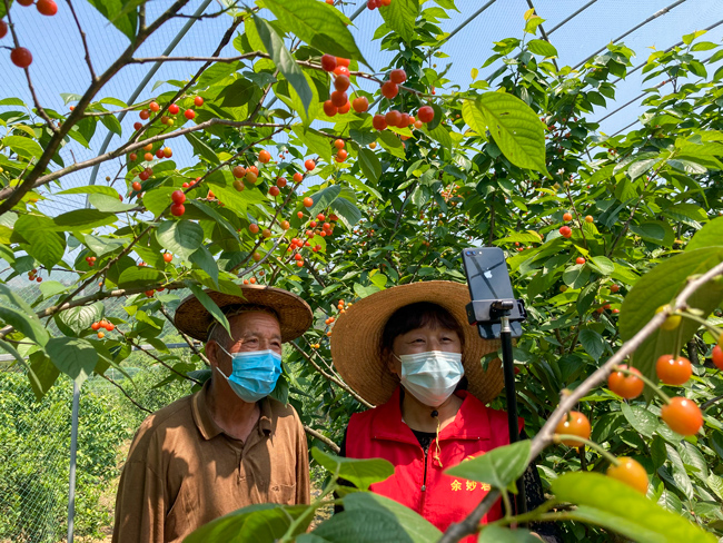 近日,在金華市金東區赤松鎮虎巖村,“短柄”櫻桃成熟,猶如一盞盞小燈籠掛在枝條,村黨員志愿者網上幫助農戶吆喝?;r村黨支部書記王基林介紹說,全村櫻桃種植面積1300多畝,品種有傳統的短柄、黑珍珠以及新引進的紅妃,櫻桃銷售收入成為村民的一項主要經濟來源,這幾天天氣晴好,櫻桃成熟快,一星期后上市量更大,采摘期持續到5月初。2022年為了防控新冠疫情,村黨支部組織黨員和志愿者把農戶采摘的櫻桃派送到指定地點,方便預訂的客戶拿取。(時寬兵)