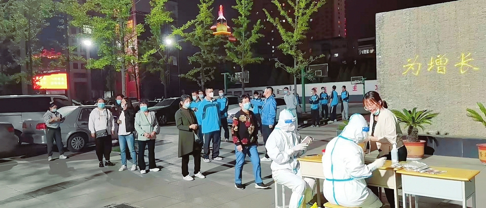 在太原市第三十中學,醫務人員為該校師生做核酸檢測。