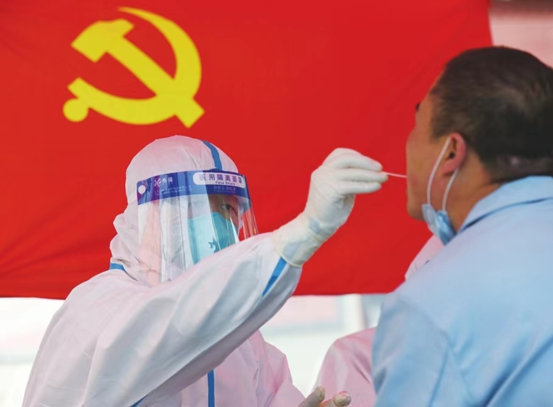 把黨旗插在第一線,以實(shí)際行動(dòng)筑牢疫情防控“紅色防線”。4月26日,太原市迎澤區(qū)開展第三輪全員核酸檢測(cè),在各個(gè)檢測(cè)點(diǎn),最忙碌的還是身著防護(hù)服的“大白”,他們耐心又細(xì)致地為居民做著核酸檢測(cè)。武六紅 攝