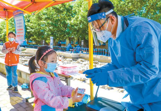 昨天清晨,天剛蒙蒙亮,鄭爍就到達集結點位。核酸檢測開始后,鄭爍主要負責現場秩序維護引導、掃碼登記、查驗健康寶、協助老年人做好信息登記等工作。“昨天北京的最高氣溫達到32攝氏度,核酸檢測期間,我們志愿者小組為上千位居民提供了服務,這期間一個跟著媽媽來做核酸的小女孩每路過一位志愿者都會主動說一聲‘叔叔阿姨,辛苦了!’聽著孩子甜美的問候,再累也值了!”鄭爍告訴記者。