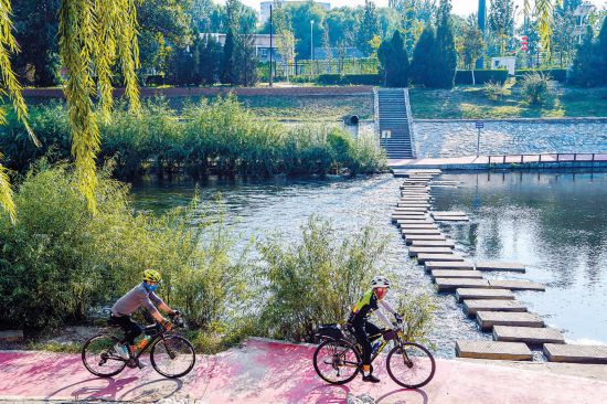 改造后的涼水河豐臺段沿岸綠化與慢行系統融合,為市民休閑騎行增添更多樣的景觀體驗。 本報記者 鄧偉攝