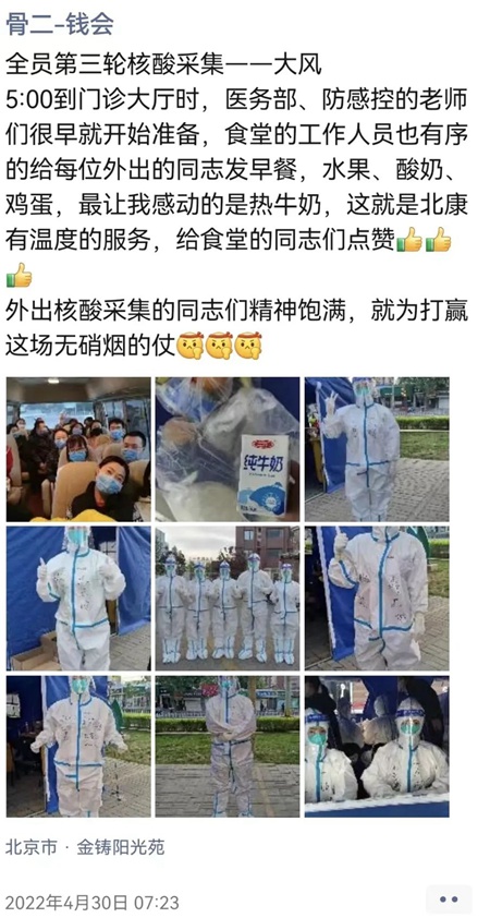 4月30日是五一小長假第一天,晚7點,宣武醫(yī)院神經(jīng)內(nèi)科電生理專業(yè)組工作群的消息突然響了,組長黃朝陽發(fā)布了一條信息:“5月1日和3日各需5人支援西城核酸采樣任務(wù),請大家積極響應(yīng),積極報名!”看到醫(yī)院緊急通知,同事們用無聲、快速地接龍做出了回應(yīng),名額很快報滿,很多沒報上的同事還主動要求成為候補。