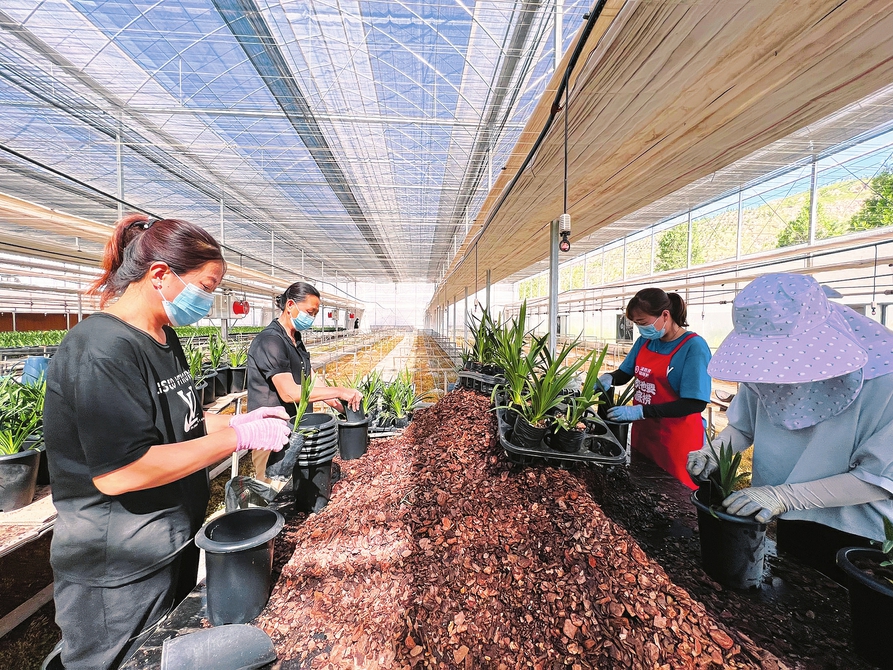 6月16日,山西盛世蘭花生物科技有限公司,員工正在培植盆栽蘭花。該公司是大寧縣從四川綿陽引進的一家高新農業科技企業,主要從事蘭花的引進、研發、繁育、生產、營銷、觀光休閑旅游。其與中科院、國家林科院以及省內大專院校、科研部門建立長期合作關系,在大寧縣曲峨鎮甘棠村分三期新建10萬平方米溫室大棚,全部投產后可吸納1000余名農村剩余勞動力實現就業。(記者李兆民攝)