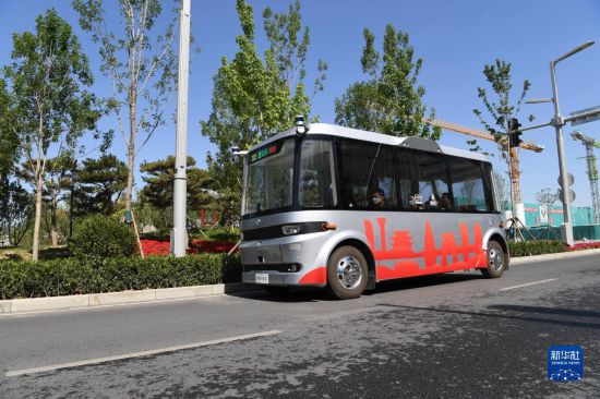 一輛無人駕駛車在雄安新區道路進行路測(2022年5月27日攝)。新華社記者 朱旭東 攝