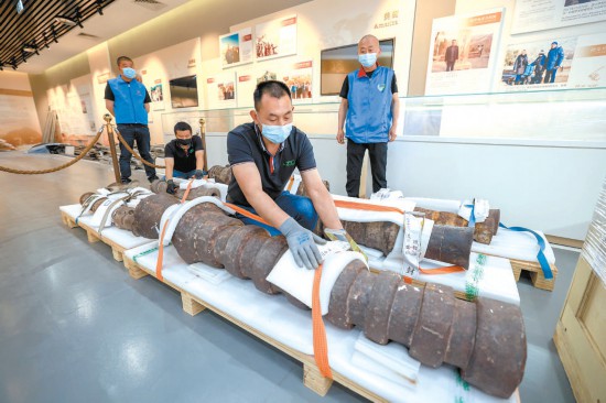 有了“腿”,神炮便“來去自如”了許多。之后,將用液壓拖車機械裝車,與館內(nèi)所有文物統(tǒng)一運輸。
