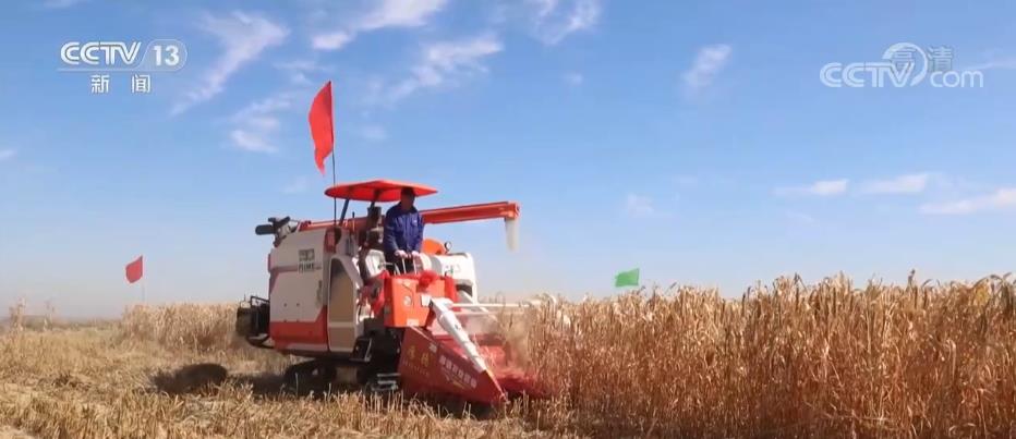 在米脂縣萬畝高標準農田里,收割機在谷田里來回穿梭,保證顆粒歸倉。今年,當地雨水充沛,谷穗籽粒飽滿、長勢喜人,預計今年谷子畝產將達到800斤,每畝較去年增收900到1000元。